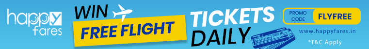 Win Free Flight Tickets Daily Now get a chance to win free flight tickets daily when you book flights on HappyFares 1 Lucky Winner Everyday Gets a Free TicketFree Ticket will be given as a Promo CodeMaximum Value of the Promo Code Rs 3000/-Promo Code can be used to book any ticket on any airline BEFORE 31MARCH 2021 Travel Dates can be anytime, and can be used on any airline.Any Difference Amount over and above Rs 3000/- to be paid extra. PROMOCODE : FLYFREE BOOK NOW